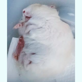 This is her right now. Her fur already grew back a week ago but now her wound is stopping her fur from growing.